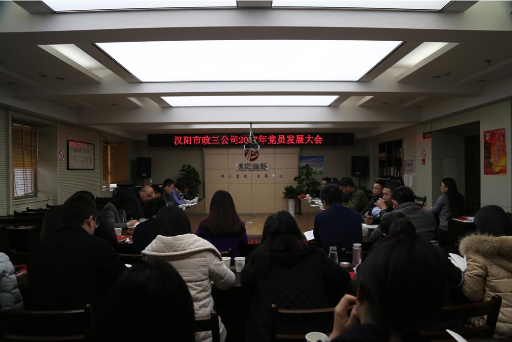 20171223日,汉阳市政三公司支部全体党员在公司大会议室召开党员发展及转正大会,大会同意郭文婷、刘海军、闵慧子三名同志转为中共正式党员,接收向涛、纪成成两名同志为中共预备党员。大会由支部副书记郭一清主持。